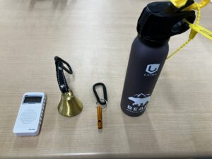 ラジオにクマ鈴、撃退スプレーにホイッスル・・